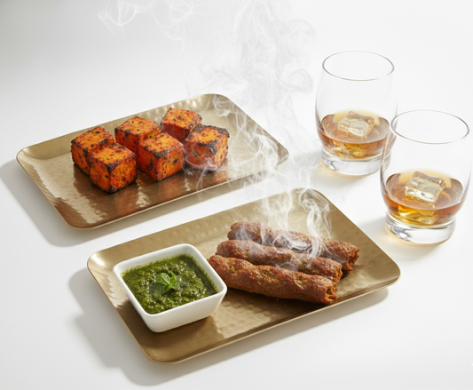 Car-O-Bar Premium Steel Serving Platter with Brass Handles | Hammered Design