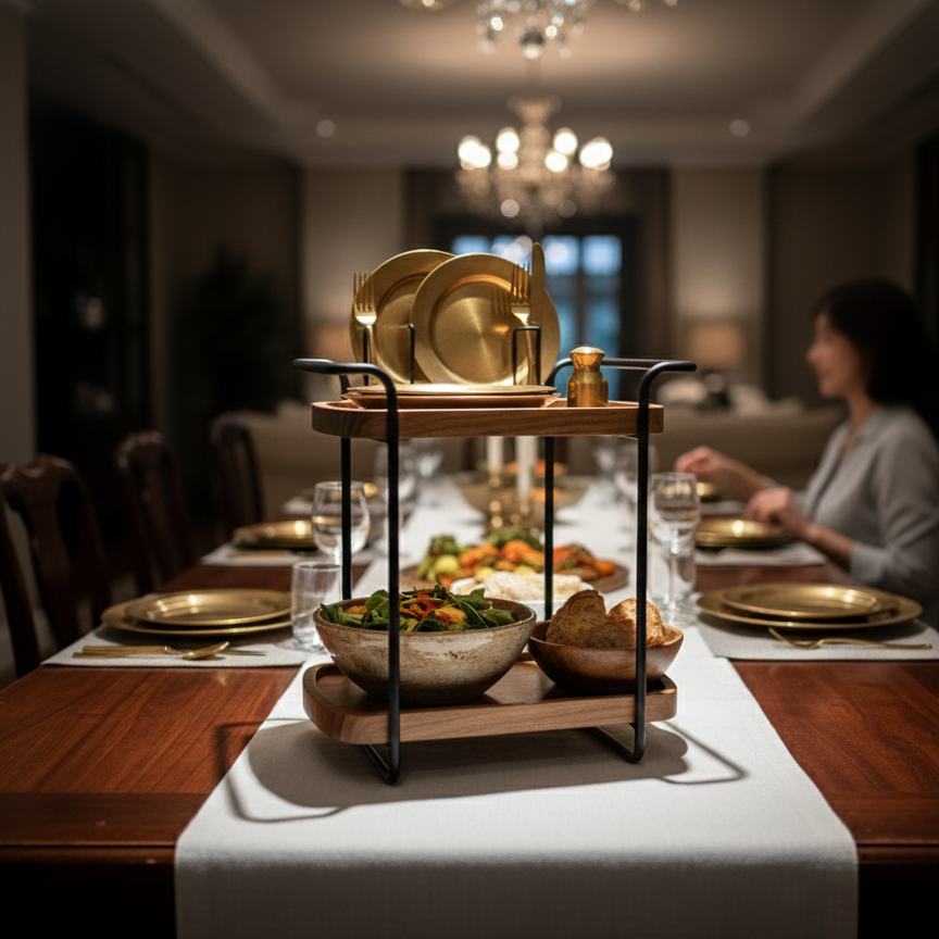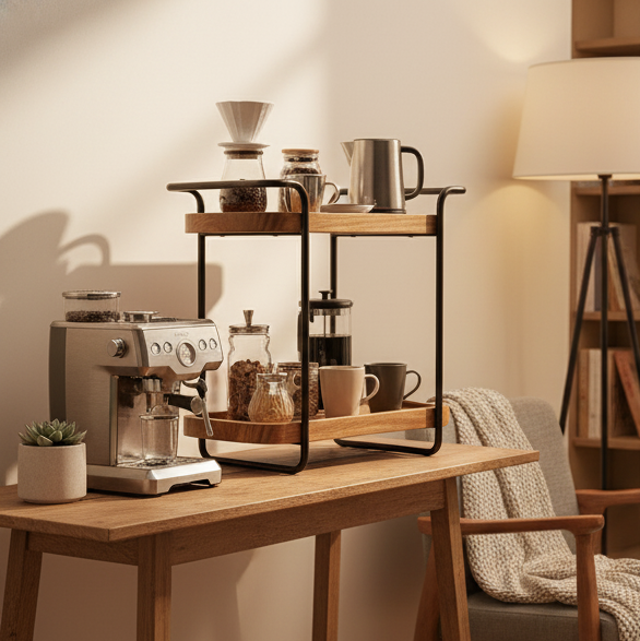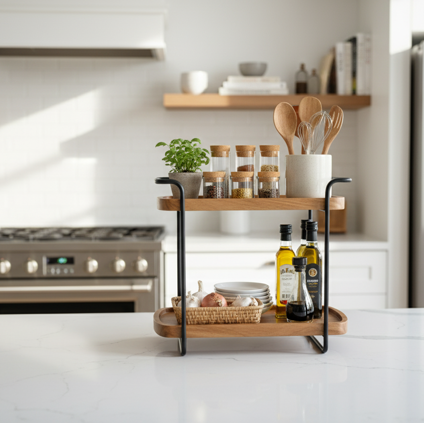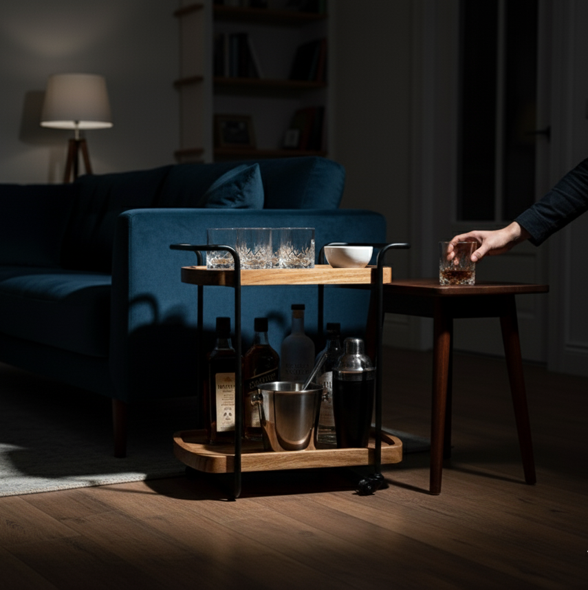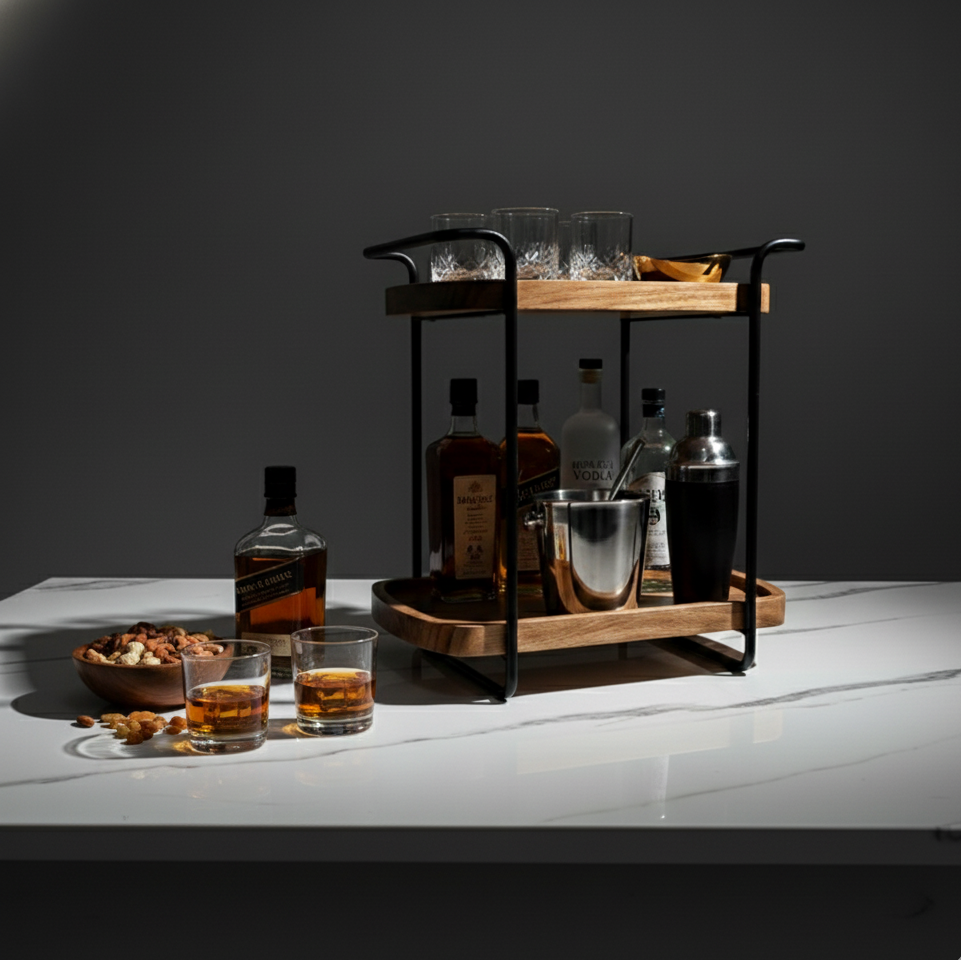 CAR-O-BAR Premium Multipurpose Wine Rack & Organizer | 2-Tier Wooden Serving Shelf | Countertop Wine & Whiskey Rack Mini Bar Organizer | Multipurpose Retro Bar Shelf for Home & Kitchen