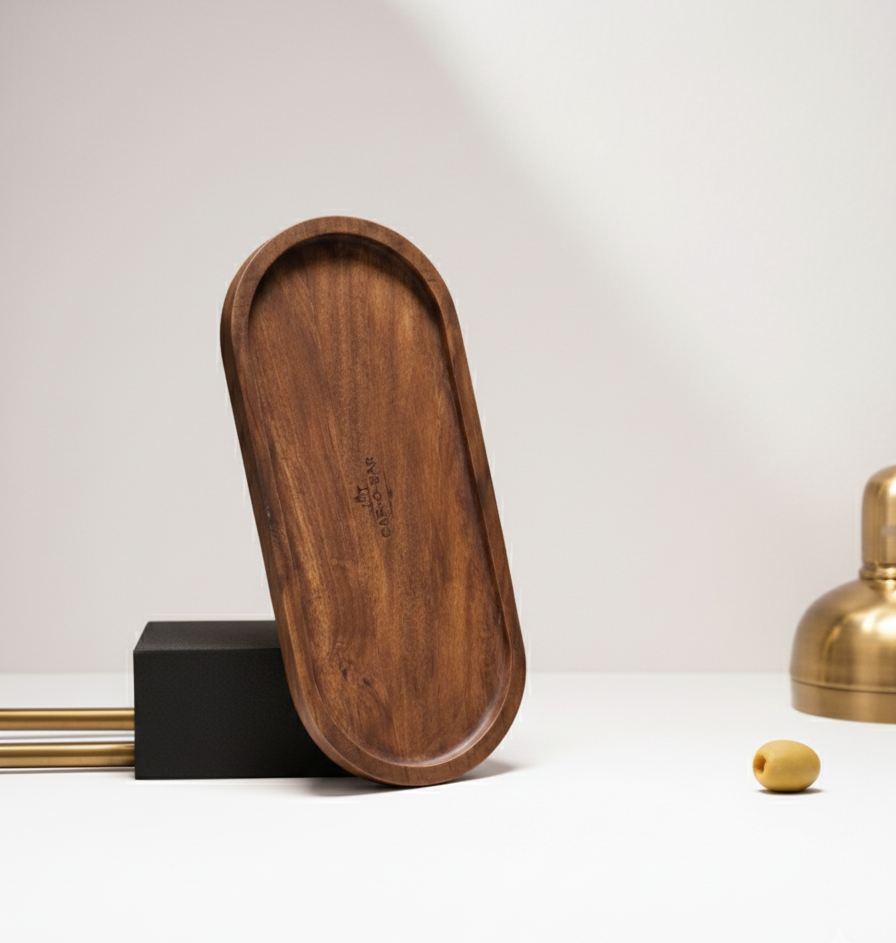 Car-O-Bar Premium Wooden Serving Tray Platter | Mahogany Finish